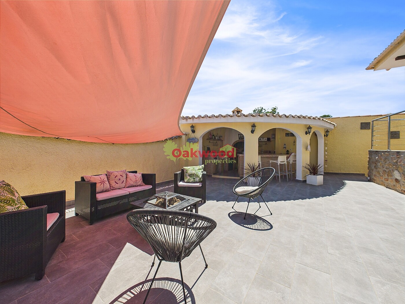 À l'extérieur, vous découvrirez un véritable oasis méditerranéen. La piscine privée se trouve au centre d’un jardin soigneusement entretenu, entourée de terrasses, d’espaces détente et d’un coin barbecue intégré — parfait pour profiter des longues après-midis d'été. Juste à côté, une zone de sport et loisirs avec mini-golf vient compléter les aménagements extérieurs.